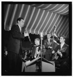 | Keywords: (Portrait of Abe Most, Pete Ponti, Sid Jacobs, and Jimmy Norton, Hickory House, New York, N.Y., ca. June 1947) (LOC) (5104549355).jpg Gottlieb William P 1917- photographer Portrait of Abe Most Pete Ponti Sid Jacobs and Jimmy Norton Hickory House New York N Y ca June 1947 1 negative b w ; 2 1/4 x 2 1/4 in Notes Gottlieb Collection Assignment No 255 Reference print available in Music Division Library of Congress Purchase William P Gottlieb Forms part of William P Gottlieb Collection Library of Congress Subjects Most Abe Ponti Pete Jacobs Sid Norton Jimmy Jazz musicians--1940-1950 Clarinetists--1940-1950 Accordionists--1940-1950 Fifty-second Street New York N Y --1940-1950 Hickory House Format Portrait photographs--1940-1950 Cityscape photographs--1940-1950 Film negatives--1940-1950 Rights Info Mr Gottlieb has dedicated these works to the public domain but rights of privacy and publicity may apply http //lcweb2 loc gov/diglib/ihas/html/gottlieb/gottlieb-copyright html lcweb2 loc gov/diglib/ihas/html/gottlieb/gottlieb-copyrig Repository negative Library of Congress Prints Photographs Division Washington D C 20540 USA http //hdl loc gov/loc pnp/pp print hdl loc gov/loc pnp/pp print reference print Library of Congress Music Division Washington D C 20540 USA http //loc gov/rr/perform/ loc gov/rr/perform/ Part Of William P Gottlieb Collection DLC 99-401005 General information about the Gottlieb Collection is available at http //lcweb2 loc gov/diglib/ihas/html/gottlieb/gottlieb-home html lcweb2 loc gov/diglib/ihas/html/gottlieb/gottlieb-home html Persistent URL http //hdl loc gov/loc music/gottlieb 06481 hdl loc gov/loc music/gottlieb 06481 Call Number LC-GLB23- 0648<br/> PD-Gottlieb https //www flickr com/photos/library_of_congress/5104549355/ Portrait of Abe Most Pete Ponti Sid Jacobs and Jimmy Norton Hickory House New York N Y ca June 1947 LOC https //www flickr com/people/8623220 N02 The Library of Congress http //www loc gov/rr/print/195_copr html noknown The Library of Congress Flickr Commons Flickr-no known copyright restrictions The Library of Congress https //flickr com/photos/8623220 N02/5104549355 2015-09-01 22 53 24 pd Photographs by William P Gottlieb |