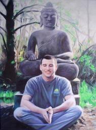 Keywords: Portrait of american buddhist with thai buddha.jpg 2006-10-13 own assumed Andrew Parodi Buddhist art This painting is based on the following photograph Image American Buddhist with Thai Buddha photo jpg