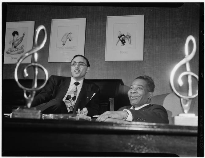 | Keywords: (Portrait of Bernie Benjamin and George (George David) Weiss in their office, New York, N.Y., ca. Apr. 1947) (LOC) (4888662550).jpg  Gottlieb William P 1917- photographer Portrait of Bernie Benjamin and George George David Weiss in their office New York N Y ca Apr 1947 1 negative b w ; 3 1/4 x 4 1/4 in Notes Gottlieb Collection Assignment No 027 Reference print available in Music Division Library of Congress Purchase William P Gottlieb Forms part of William P Gottlieb Collection Library of Congress In Friendship pays dividends Down Beat v 14 no 9 Apr 23 1947 p 15 Subjects Benjamin Bernie Weiss George George David Composers--1940-1950 Format Portrait photographs--1940-1950 Group portraits--1940-1950 Film negatives--1940-1950 Rights Info Mr Gottlieb has dedicated these works to the public domain but rights of privacy and publicity may apply http //lcweb2 loc gov/diglib/ihas/html/gottlieb/gottlieb-copyright html lcweb2 loc gov/diglib/ihas/html/gottlieb/gottlieb-copyrig Repository negative Library of Congress Prints Photographs Division Washington D C 20540 USA http //hdl loc gov/loc pnp/pp print hdl loc gov/loc pnp/pp print reference print Library of Congress Music Division Washington D C 20540 USA http //loc gov/rr/perform/ loc gov/rr/perform/ Part Of William P Gottlieb Collection DLC 99-401005 General information about the Gottlieb Collection is available at http //lcweb2 loc gov/diglib/ihas/html/gottlieb/gottlieb-home html lcweb2 loc gov/diglib/ihas/html/gottlieb/gottlieb-home html Persistent URL http //hdl loc gov/loc music/gottlieb 00651 hdl loc gov/loc music/gottlieb 00651 Call Number LC-GLB13- 0065<br/> PD-Gottlieb https //www flickr com/photos/library_of_congress/4888662550/ Portrait of Bernie Benjamin and George George David Weiss in their office New York N Y ca Apr 1947 LOC https //www flickr com/people/8623220 N02 The Library of Congress http //www loc gov/rr/print/195_copr html noknown The Library of Congress Flickr Commons Flickr-no known copyright restrictions The Library of Congress https //flickr com/photos/8623220 N02/4888662550 2015-09-01 22 56 27 pd Photographs by William P Gottlieb |