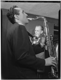 | Keywords: (Portrait of Bill Harris and Charlie Ventura, William P. Gottlieb's home (table tennis room), N.Y., ca. Apr. 1947) (LOC) (4843746174).jpg Gottlieb William P 1917- photographer Portrait of Bill Harris and Charlie Ventura William P Gottlieb's home table tennis room N Y ca Apr 1947 1 negative b w ; 3 1/4 x 4 1/4 in Notes Gottlieb Collection Assignment No 328 Reference print available in Music Division Library of Congress Purchase William P Gottlieb Forms part of William P Gottlieb Collection Library of Congress Subjects Harris Bill 1916-1973 Ventura Charlie Jazz musicians--1940-1950 Trombonists--1940-1950 Saxophonists--1940-1950 Format Portrait photographs--1940-1950 Group portraits--1940-1950 Film negatives--1940-1950 Rights Info Mr Gottlieb has dedicated these works to the public domain but rights of privacy and publicity may apply http //lcweb2 loc gov/diglib/ihas/html/gottlieb/gottlieb-copyright html lcweb2 loc gov/diglib/ihas/html/gottlieb/gottlieb-copyrig Repository negative Library of Congress Prints Photographs Division Washington D C 20540 USA http //hdl loc gov/loc pnp/pp print hdl loc gov/loc pnp/pp print reference print Library of Congress Music Division Washington D C 20540 USA http //loc gov/rr/perform/ loc gov/rr/perform/ Part Of William P Gottlieb Collection DLC 99-401005 General information about the Gottlieb Collection is available at http //lcweb2 loc gov/diglib/ihas/html/gottlieb/gottlieb-home html lcweb2 loc gov/diglib/ihas/html/gottlieb/gottlieb-home html Persistent URL http //hdl loc gov/loc music/gottlieb 03951 hdl loc gov/loc music/gottlieb 03951 Call Number LC-GLB13- 0395<br/> PD-Gottlieb https //www flickr com/photos/library_of_congress/4843746174/ Portrait of Bill Harris and Charlie Ventura William P Gottlieb's home table tennis room N Y ca Apr 1947 LOC https //www flickr com/people/8623220 N02 The Library of Congress http //www loc gov/rr/print/195_copr html noknown The Library of Congress Flickr Commons Flickr-no known copyright restrictions The Library of Congress https //flickr com/photos/8623220 N02/4843746174 2015-09-01 22 53 42 pd Photographs by William P Gottlieb Charlie Ventura Bill Harris |