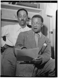 | Keywords: (Portrait of Billy Strayhorn, New York, N.Y., ca. June 1947) (LOC) (5148190861).jpg Gottlieb William P 1917- photographer Portrait of Billy Strayhorn New York N Y ca June 1947 1 negative b w ; 3 1/4 x 4 1/4 in Caption from Down Beat Los Angeles--Richard M Jones at right above valet and chief factotum for Duke Ellington for two decades died here on August 6 from a complication of illnesses Knows as Jonesy or Bowdin to members of the band he joined Ellington in 1927 at the Cotton Club and had been a trusted employee ever since He is seen above with Billy Strayhorn arranger left and Jerome Rhea secretary discussing one of the maestro's neckties Notes Gottlieb Collection Assignment No 477 Reference print available in Music Division Library of Congress Purchase William P Gottlieb Forms part of William P Gottlieb Collection Library of Congress In Jonesy answers final call Down Beat v 13 no 18 Aug 26 1946 p 2 Subjects Strayhorn Billy Rhea Jerome Jones Richard M Jazz musicians--1940-1950 Composers--1940-1950 Pianists--1940-1950 Format Portrait photographs--1940-1950 Group portraits--1940-1950 Film negatives--1940-1950 Rights Info Mr Gottlieb has dedicated these works to the public domain but rights of privacy and publicity may apply http //lcweb2 loc gov/diglib/ihas/html/gottlieb/gottlieb-copyright html lcweb2 loc gov/diglib/ihas/html/gottlieb/gottlieb-copyrig Repository negative Library of Congress Prints Photographs Division Washington D C 20540 USA http //hdl loc gov/loc pnp/pp print hdl loc gov/loc pnp/pp print reference print Library of Congress Music Division Washington D C 20540 USA http //loc gov/rr/perform/ loc gov/rr/perform/ Part Of William P Gottlieb Collection DLC 99-401005 General information about the Gottlieb Collection is available at http //lcweb2 loc gov/diglib/ihas/html/gottlieb/gottlieb-home html lcweb2 loc gov/diglib/ihas/html/gottlieb/gottlieb-home html Persistent URL http //hdl loc gov/loc music/gottlieb 08231 hdl loc gov/loc music/gottlieb 08231 Call Number LC-GLB13- 0823<br/> PD-Gottlieb https //www flickr com/photos/library_of_congress/5148190861/ Portrait of Billy Strayhorn New York N Y ca June 1947 LOC https //www flickr com/people/8623220 N02 The Library of Congress http //www loc gov/rr/print/195_copr html noknown The Library of Congress Flickr Commons Flickr-no known copyright restrictions The Library of Congress https //flickr com/photos/8623220 N02/5148190861 2015-09-01 22 57 28 pd Photographs by William P Gottlieb |