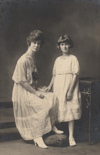 Keywords: children group portraits groupportraits women people groupshot Photographer: Reuben R. Sallows (1855 - 1937) Description: Studio portrait of woman and young girl, full-length, facing front; woman on left sits on edge of table, resting foot on upholstered stool, wears white lace dress with large dark bow at chest, white stockings and shoes, chain around neck, upswept hair; young girl standing on right, wears knee-length white dress, stockings and shoes; square wicker table at right; Sallows imprint in lower right corner of matte; writing in pencil on front identifies subjects: Clara and Verna Sallows Object ID : 0538-rrs-ogohc-ph View additional photographs by Sallows that are held in other collections at the Reuben R. Sallows Digital Library. Order a higher-quality version of this item by contacting the Huron County Museum (fee applies). Photographer: Reuben R. Sallows (1855 - 1937) Description: Studio portrait of woman and young girl, full-length, facing front; woman on left sits on edge of table, resting foot on upholstered stool, wears white lace dress with large dark bow at chest, white stockings and shoes, chain around neck, upswept hair; young girl standing on right, wears knee-length white dress, stockings and shoes; square wicker table at right; Sallows imprint in lower right corner of matte; writing in pencil on front identifies subjects: Clara and Verna Sallows Object ID : 0538-rrs-ogohc-ph View additional photographs by Sallows that are held in other collections at the Reuben R. Sallows Digital Library. Order a higher-quality version of this item by contacting the Huron County Museum (fee applies). |
