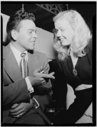 | Keywords: (Portrait of Doris Day and Les Brown, Aquarium, New York, N.Y., ca. July 1946) (LOC) (4843125023).jpg Gottlieb William P 1917- photographer Portrait of Doris Day and Les Brown Aquarium New York N Y ca July 1946 1 negative b w ; 3 1/4 x 4 1/4 in Caption from Down Beat Les Brown and Doris Day Notes Gottlieb Collection Assignment No 103 Reference print available in Music Division Library of Congress Purchase William P Gottlieb Forms part of William P Gottlieb Collection Library of Congress In What's keeping Les out of the top brackets Down Beat v 13 no 15 July 15 1946 p 3 Subjects Day Doris 1924- Brown Les 1912- Jazz musicians--1940-1950 Women jazz musicians--1940-1950 Jazz singers--1940-1950 Actresses--1940-1950 Composers--1940-1950 Aquarium Format Portrait photographs--1940-1950 Group portraits--1940-1950 Film negatives--1940-1950 Rights Info Mr Gottlieb has dedicated these works to the public domain but rights of privacy and publicity may apply http //lcweb2 loc gov/diglib/ihas/html/gottlieb/gottlieb-copyright html lcweb2 loc gov/diglib/ihas/html/gottlieb/gottlieb-copyrig Repository negative Library of Congress Prints Photographs Division Washington D C 20540 USA http //hdl loc gov/loc pnp/pp print hdl loc gov/loc pnp/pp print reference print Library of Congress Music Division Washington D C 20540 USA http //loc gov/rr/perform/ loc gov/rr/perform/ Part Of William P Gottlieb Collection DLC 99-401005 General information about the Gottlieb Collection is available at http //lcweb2 loc gov/diglib/ihas/html/gottlieb/gottlieb-home html lcweb2 loc gov/diglib/ihas/html/gottlieb/gottlieb-home html Persistent URL http //hdl loc gov/loc music/gottlieb 01831 hdl loc gov/loc music/gottlieb 01831 Call Number LC-GLB13- 0183<br/> PD-Gottlieb https //www flickr com/photos/library_of_congress/4843125023/ Portrait of Doris Day and Les Brown Aquarium New York N Y ca July 1946 LOC https //www flickr com/people/8623220 N02 The Library of Congress http //www loc gov/rr/print/195_copr html noknown The Library of Congress Flickr Commons Flickr-no known copyright restrictions The Library of Congress https //flickr com/photos/8623220 N02/4843125023 2015-09-01 22 58 45 pd 1940s Doris Day Les Brown Smiling Photographs by William P Gottlieb |