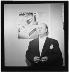 | Keywords: (Portrait of Edwin A. Finckel in his home, Greenwich Village, New York, N.Y., ca. July 1946) (LOC) (4977076492).jpg Gottlieb William P 1917- photographer Portrait of Edwin A Finckel in his home Greenwich Village New York N Y ca July 1946 1 negative b w ; 2 1/4 x 2 1/4 in Notes Gottlieb Collection Assignment No 509 Reference print available in Music Division Library of Congress Purchase William P Gottlieb Forms part of William P Gottlieb Collection Library of Congress In Boyd claims he did allright by our little nell Down Beat v 13 no 15 July 15 1946 p 8 Subjects Finckel Edwin A Jazz musicians--1940-1950 Format Portrait photographs--1940-1950 Film negatives--1940-1950 Rights Info Mr Gottlieb has dedicated these works to the public domain but rights of privacy and publicity may apply http //lcweb2 loc gov/diglib/ihas/html/gottlieb/gottlieb-copyright html lcweb2 loc gov/diglib/ihas/html/gottlieb/gottlieb-copyrig Repository negative Library of Congress Prints Photographs Division Washington D C 20540 USA http //hdl loc gov/loc pnp/pp print hdl loc gov/loc pnp/pp print reference print Library of Congress Music Division Washington D C 20540 USA http //loc gov/rr/perform/ loc gov/rr/perform/ Part Of William P Gottlieb Collection DLC 99-401005 General information about the Gottlieb Collection is available at http //lcweb2 loc gov/diglib/ihas/html/gottlieb/gottlieb-home html lcweb2 loc gov/diglib/ihas/html/gottlieb/gottlieb-home html Persistent URL http //hdl loc gov/loc music/gottlieb 02831 hdl loc gov/loc music/gottlieb 02831 Call Number LC-GLB23- 0283<br/> PD-Gottlieb https //www flickr com/photos/library_of_congress/4977076492/ Portrait of Edwin A Finckel in his home Greenwich Village New York N Y ca July 1946 LOC https //www flickr com/people/8623220 N02 The Library of Congress http //www loc gov/rr/print/195_copr html noknown The Library of Congress Flickr Commons Flickr-no known copyright restrictions The Library of Congress https //flickr com/photos/8623220 N02/4977076492 2015-09-01 22 57 35 pd Photographs by William P Gottlieb |