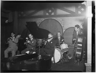View Original:(Portrait_of_Ernie_Caceres,_Bobby_Hackett,_Freddie_Ohms,_and_George_Wettling,_Nick's_(Tavern)(?),_New_York,_N.Y.,_between_1946_and_1948)_(LOC)_(4977088868).jpg (1024x779)