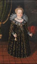 | Keywords: Portrait of girl - Google Art Project.jpg commons date commons medium commons dimensions commons institution commons location commons references commons object_history commons exhibition_history commons credit_line commons inscriptions commons notes commons accession_number commons source commons permission commons other_versions commons zoom core title Portrait of girl core creator Unknown core date dateCreated 1627 core format w84 x h142 cm core type Painting core relation http //www digitaltmuseum se/things/portrtt/S-NM/NM 0077239 core rights Photo Bertil Wreting ©Nordiska museet c-09caf48a customtext more_information During the seventeenth century it was primarily the higher social classes that had portraits commissioned but portraits became increasingly common among other groups as prosperity increased during Sweden's time as a great power This girl's high status is marked by the crown on her head the expensive dress and the jewellery she is wearing The painting shows the conventional way in which girls were depicted in the early 1600s full-length in ankle-length dress turned slightly to the side against a backdrop of heavy falling drapery The girl is wearing a necklace and bracelets of pearls “ the latter worn in pairs according to the fashion of the time “ and her hands are holding her gloves and a feather fan The tiled floor facilitated the introduction of perspective into the painting and made it possible to mark the depth of the room Based on the inscription on the portrait it was previously assumed that the portrait was of Queen Kristina of Sweden for which artist Cornelius Arendtz received 20 crowns in payment in 1632 Today this attribution is hotly debated as restoration has shown that the painting was reworked afterwards and the original year of 1627 in the inscription had been changed to 1632 The crown appears to be original however and of the royal children depicted at the end of the 16th and start of the 17th century only Kristina would have worn a crown Kristina was born in 1626 as the only child of King Gustav II Adolf She became queen shortly before her sixth birthday in 1632 If the portrait truly depicts Kristina it is the only known portrait of her completed before her father King Gustav II Adolf's death Unknown artist possibly Cornelius Arendtz google display_date 1627 google is_artproject TRUE google is_gigapixel FALSE google is_secured TRUE google partner/id 0000000009caf48a google partner/name Nordiska Museet google picasa_token PCst6M3u9ZwwWSNYv-jSY-QUsJg special url_id 7QHSaJXtQfwU0w special partner/name_no_lang Nordiska Museet PD-old-100-1923 Google Art Project works by unknown artist 1627 portrait paintings Google Art Project works in Nordiska Museet |