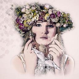 Keywords: portrait girl wreath hair blonde baby baby doll model man young beauty human handsome face youth digital water coloring digital art