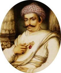 | Keywords: Portrait of Hyder Beg Khan, the Minister to the Nawab of A Wadh, Asaf-Au-Daula crop.png Nawab of Awadh Asaf-ud-Daula During the late 18th century a number of British artists--miniaturists oil painters watercolourists--went to India to work for the expatriate British community and local Indian dignitaries and royalty Many such as Ozias Humphry believed that India would provide them not only with a better living than could be had in the crowded market of London but indeed a fortune Humphry resolved to go to India upon hearing that at that time there was no ˜tolerable miniature painter ™there The East India Company granted him permission to travel and to paint miniatures on the boat over to cover his costs But Humphry's experience of India proved to be a bitter one culminating in his suing the crew for lost earnings on his voyage home only three years later when his cabin was too small for him to use as a studio The fact was that the expatriate community certainly wanted their miniatures painted--there was much exchange of letters and miniatures on the mail ships that went back and forth But the richest patrons the Indian princes were remiss in paying for the work One nawab owed Humphry for seven months work but since he also owed the East India Company money the company's claim was put first The work is inscribed on the back of the ivory probably in the artist's hand Hyder Beg Khan / the minister of Asoph ul Dowlah / 1786 / Lucknow The current spelling is 'Asaf-Au-Daula' 1786 watercolour ivory miniature Institution Victoria and Albert Museum Portrait Miniatures room 90a case 12 cropped from File Portrait of Hyder Beg Khan the Minister to the Nawab of A Wadh Asaf-Au-Daula jpg<br />http //collections vam ac uk/item/O75437/portrait-of-hyder-beg-khan-miniature-humphry-ozias-ra/ collections vam ac uk http //collections vam ac uk/item/O75437/miniature-portrait-of-hyder-beg-khan/ other versions <gallery>Hyder Beg Khan minister to Nawab of Awadh Asaf-ud-Daula 1786 jpg File Portrait of Hyder Beg Khan the Minister to the Nawab of A Wadh Asaf-Au-Daula jpg </gallery> PD-old-100 DEFAULTSORT 1786; Hyder Beg Khan Ozias Humphrey Portrait miniatures in the Victoria and Albert Museum Hyder Beg Khan 1786 portrait paintings Male 18th-century oval portrait miniatures of men at half length 18th-century portrait paintings in the United Kingdom 18th-century watercolor portraits of men Hand on chest Portrait paintings of men wearing turbans |