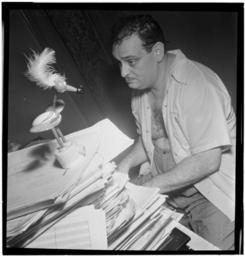 | Keywords: (Portrait of Johnny Richards, New York, N.Y., ca. Sept. 1947) (LOC) (5105157916).jpg Gottlieb William P 1917- photographer Portrait of Johnny Richards New York N Y ca Sept 1947 1 negative b w ; 2 1/4 x 2 1/4 in Caption from Down Beat The Gooney Bird gives little comfort Johnny Richards finds when the weather's hot and the piano's getting lost under the score paper Crack arranger Richards finds it difficult to let the gooney do his work for him Boyd Raeburn whose band uses the Richards arrangements ought to get a couple little worry birds of his own Notes Gottlieb Collection Assignment No 274 Reference print available in Music Division Library of Congress Purchase William P Gottlieb Forms part of William P Gottlieb Collection Library of Congress In Gooney fails a tired friend Down Beat v 14 no 20 Sept 24 1947 p 2 Subjects Richards Johnny Jazz musicians--1940-1950 Composers--1940-1950 Format Portrait photographs--1940-1950 Film negatives--1940-1950 Rights Info Mr Gottlieb has dedicated these works to the public domain but rights of privacy and publicity may apply http //lcweb2 loc gov/diglib/ihas/html/gottlieb/gottlieb-copyright html lcweb2 loc gov/diglib/ihas/html/gottlieb/gottlieb-copyrig Repository negative Library of Congress Prints Photographs Division Washington D C 20540 USA http //hdl loc gov/loc pnp/pp print hdl loc gov/loc pnp/pp print reference print Library of Congress Music Division Washington D C 20540 USA http //loc gov/rr/perform/ loc gov/rr/perform/ Part Of William P Gottlieb Collection DLC 99-401005 General information about the Gottlieb Collection is available at http //lcweb2 loc gov/diglib/ihas/html/gottlieb/gottlieb-home html lcweb2 loc gov/diglib/ihas/html/gottlieb/gottlieb-home html Persistent URL http //hdl loc gov/loc music/gottlieb 07401 hdl loc gov/loc music/gottlieb 07401 Call Number LC-GLB23- 0740<br/> PD-Gottlieb https //www flickr com/photos/library_of_congress/5105157916/ Portrait of Johnny Richards New York N Y ca Sept 1947 LOC https //www flickr com/people/8623220 N02 The Library of Congress http //www loc gov/rr/print/195_copr html noknown The Library of Congress Flickr Commons Flickr-no known copyright restrictions The Library of Congress https //flickr com/photos/8623220 N02/5105157916 2015-09-01 23 54 22 pd Photographs by William P Gottlieb Johnny Richards |