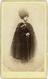 | Keywords: Portrait of a man in cape and sheep skin hat, holding a rifle. George Kennan. 1870-1886.jpg en Full-length portrait of a man in cape and sheep skin hat holding a rifle facing right http //lcweb2 loc gov/service/pnp/ppmsc/01400/01406v jpg United States Library of Congress Transfer; Manuscript Division George Kennan Papers ; 1973; DLC/PP-1973 080 Forms part of George Kennan Papers - 1870 1886 George Kennan died in 1924 LOC-image cph 3c28160 Source LOC-image ppmsc 01406 PD-old Chokha with fur hat People of Viceroyalty of the Caucasus Photos by George Kennan Men facing right People of the Caucasus with chokha Fur garments Fur fashion in 1878 |
