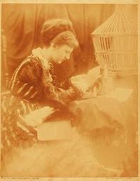 | Keywords: Portrait of May Prinsep seated by Julia Margaret Cameron.jpg en Portrait of May Prinsep seated next to a birdcage writing a letter albumen print by the British photographer Julia Margaret Cameron 350 mm x 275 mm Courtesy of the Dimbola Lodge Museum Isle of Wight 2011-04-24 Dimbola Lodge Museum http //www dimbola com/archive/Page_10_Girl_Seated html Creator Julia Margaret Cameron PD-old-100 Uploaded with UploadWizard Photographs by Julia Margaret Cameron Black and white photographic portraits of women May Prinsep |