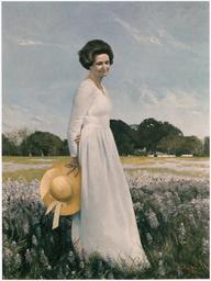 | Keywords: Portrait of Mrs. Lyndon B. Johnson - NARA - 192427.tif Scope and content This painting depicts Mrs Lyndon B Johnson standing in a field of wildflowers with the LBJ Ranch in the background It was painted from life on April 19th through the 29th 1978 at the Lyndon B Johnson Library and Museum by Aaron Shikler General notes The painting measures 59 x 46-3/4 framed; 50-1/4 x 38 1/4 unframed 192427 Local identifier National Archives and Records Administration Office of Presidential Libraries Lyndon B Johnson Library and Museum 04/01/1985 - Creator Aaron Shikler Lyndon Baines Johnson Library NLLBJ 2313 Red River Street Austin TX 78705-5702 1978-10-23 Record group Collection LBJ-MCOLL Lyndon B Johnson Museum Collection 11/22/1963 - 07/09/1998 Record group ARC 1151 Artifacts Relating to the Life and Presidency of Lyndon B Johnson compiled 11/22/1963 - 07/09/1998 Series ARC 192413 File unit File unit ARC Variant control numbers NAIL Control Number NLJ-MCOLL-A-M14<br /> Other Identifier 78 3 1 yes Other versions NARA-cooperation PD-USGov 1978 paintings Aaron Shikler Lady Bird Johnson Lyndon Baines Johnson Library and Museum LBJ Ranch |