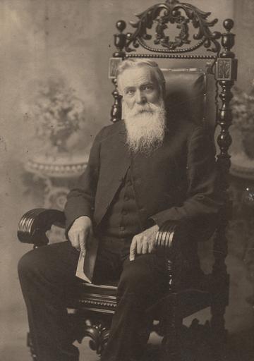 Keywords: portraits monochrome Photographer: Reuben R. Sallows (1855 - 1937) Description: Studio portrait of older man, half-length, seated, facing front; wears black suit jacket, buttoned vest, trousers; white hair, long beard and moustache; holds land deed in left hand; seated in high-backed ornately carved chair; painted backdrop; Sallows imprint in lower right corner of matte; writing across bottom identifies subject: Mr. Peter MacEwan, Sr. Object ID : 0492-rrs-ogohc-ph View additional photographs by Sallows that are held in other collections at the Reuben R. Sallows Digital Library. Order a higher-quality version of this item by contacting the Huron County Museum (fee applies). Photographer: Reuben R. Sallows (1855 - 1937) Description: Studio portrait of older man, half-length, seated, facing front; wears black suit jacket, buttoned vest, trousers; white hair, long beard and moustache; holds land deed in left hand; seated in high-backed ornately carved chair; painted backdrop; Sallows imprint in lower right corner of matte; writing across bottom identifies subject: Mr. Peter MacEwan, Sr. Object ID : 0492-rrs-ogohc-ph View additional photographs by Sallows that are held in other collections at the Reuben R. Sallows Digital Library. Order a higher-quality version of this item by contacting the Huron County Museum (fee applies).