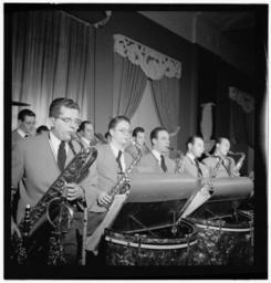 | Keywords: (Portrait of (Robert) Dean Kincaide, Bill Ainsworth, Ray Beller, Peanuts Hucko, Pete Terry, Vernon Friley, Irv Dinkin, and Jim Harwood, Hotel Commodore, Century Room, New York, N.Y., ca. Jan. 1947) (LOC) (5395851592).jpg Gottlieb William P 1917- photographer Portrait of Robert Dean Kincaide Bill Ainsworth Ray Beller Peanuts Hucko Pete Terry Vernon Friley Irv Dinkin and Jim Harwood Hotel Commodore Century Room New York N Y ca Jan 1947 1 negative b w ; 2 1/4 x 2 1/4 in Caption from Down Beat Above at left Saxophone section of the Ray McKinley band left to right Dean Kincaide Bill Ainsworth Ray Beller Peanuts Hucko Pete Terry; Notes Gottlieb Collection Assignment No 219 Purchase William P Gottlieb Forms part of William P Gottlieb Collection Library of Congress In McKinley ork plays most interesting dance music in biz Down Beat v 16 no 3 Jan 29 1947 p 8 Subjects Kincaide Robert Dean Ainsworth Bill Beller Ray Hucko Peanuts Terry Pete Friley Vernon 1924- Dinkin Irv Harwood Jim Ray McKinley Orchestra Jazz musicians--1940-1950 Big bands--1940-1950 Saxophonists--1940-1950 Hotel Commodore Format Portrait photographs--1940-1950 Group portraits--1940-1950 Film negatives--1940-1950 Rights Info Mr Gottlieb has dedicated these works to the public domain but rights of privacy and publicity may apply http //lcweb2 loc gov/diglib/ihas/html/gottlieb/gottlieb-copyright html lcweb2 loc gov/diglib/ihas/html/gottlieb/gottlieb-copyrig Repository negative Library of Congress Prints Photographs Division Washington D C 20540 USA http //hdl loc gov/loc pnp/pp print hdl loc gov/loc pnp/pp print Part Of William P Gottlieb Collection DLC 99-401005 General information about the Gottlieb Collection is available at http //lcweb2 loc gov/diglib/ihas/html/gottlieb/gottlieb-home html lcweb2 loc gov/diglib/ihas/html/gottlieb/gottlieb-home html Persistent URL http //hdl loc gov/loc music/gottlieb 13721 hdl loc gov/loc music/gottlieb 13721 Call Number LC-GLB23- 1372<br/> PD-Gottlieb https //www flickr com/photos/library_of_congress/5395851592/ Portrait of Robert Dean Kincaide Bill Ainsworth Ray Beller Peanuts Hucko Pete Terry Vernon Friley Irv Dinkin and Jim Harwood Hotel Commodore Century Room New York N Y ca Jan 1947 LOC https //www flickr com/people/8623220 N02 The Library of Congress http //www loc gov/rr/print/195_copr html noknown The Library of Congress Flickr Commons Flickr-no known copyright restrictions The Library of Congress https //flickr com/photos/8623220 N02/5395851592 2015-09-01 22 52 01 pd Photographs by William P Gottlieb Dean Kincaide Bill Ainsworth Ray Beller Peanuts Hucko Pete Terry Vernon Friley Irv Dinkin Jim Harwood |