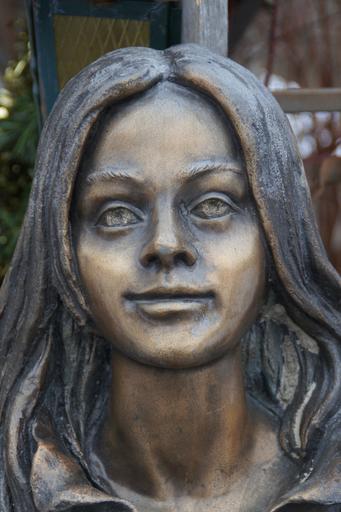Keywords: portrait sculpture girl person young woman woman face fig human statue metal head