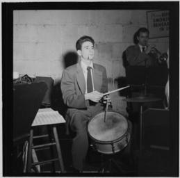 | Keywords: (Portrait of Shelly Manne, New York, N.Y.(?), ca. Jan. 1947) (LOC) (5061905333).jpg Gottlieb William P 1917- photographer Portrait of Shelly Manne New York N Y ca Jan 1947 1 negative b w ; 2 1/4 x 2 1/4 in Notes Gottlieb Collection Assignment No 163 Reference print available in Music Division Library of Congress Purchase William P Gottlieb Forms part of William P Gottlieb Collection Library of Congress Subjects Manne Shelly Stan Kenton Orchestra Jazz musicians--1940-1950 Drummers Musicians --1940-1950 Format Portrait photographs--1940-1950 Film negatives--1940-1950 Rights Info Mr Gottlieb has dedicated these works to the public domain but rights of privacy and publicity may apply http //lcweb2 loc gov/diglib/ihas/html/gottlieb/gottlieb-copyright html lcweb2 loc gov/diglib/ihas/html/gottlieb/gottlieb-copyrig Repository negative Library of Congress Prints Photographs Division Washington D C 20540 USA http //hdl loc gov/loc pnp/pp print hdl loc gov/loc pnp/pp print reference print Library of Congress Music Division Washington D C 20540 USA http //loc gov/rr/perform/ loc gov/rr/perform/ Part Of William P Gottlieb Collection DLC 99-401005 General information about the Gottlieb Collection is available at http //lcweb2 loc gov/diglib/ihas/html/gottlieb/gottlieb-home html lcweb2 loc gov/diglib/ihas/html/gottlieb/gottlieb-home html Persistent URL http //hdl loc gov/loc music/gottlieb 05971 hdl loc gov/loc music/gottlieb 05971 Call Number LC-GLB23- 0597<br/> PD-Gottlieb https //www flickr com/photos/library_of_congress/5061905333/ Portrait of Shelly Manne New York N Y ca Jan 1947 LOC https //www flickr com/people/8623220 N02 The Library of Congress http //www loc gov/rr/print/195_copr html noknown The Library of Congress Flickr Commons <gallery> File Portrait of Shelly Manne Bob Cooper Art Pepper and Bob Gioga 1947 or 1948 LOC 4843752418 jpg </gallery> Flickr-no known copyright restrictions The Library of Congress https //flickr com/photos/8623220 N02/5061905333 2015-09-02 00 12 20 pd Photographs by William P Gottlieb Shelly Manne (Portrait of Shelly Manne, New York, N.Y.(?), ca. Jan. 1947) (LOC) (5061905333).jpg Gottlieb William P 1917- photographer Portrait of Shelly Manne New York N Y ca Jan 1947 1 negative b w ; 2 1/4 x 2 1/4 in Notes Gottlieb Collection Assignment No 163 Reference print available in Music Division Library of Congress Purchase William P Gottlieb Forms part of William P Gottlieb Collection Library of Congress Subjects Manne Shelly Stan Kenton Orchestra Jazz musicians--1940-1950 Drummers Musicians --1940-1950 Format Portrait photographs--1940-1950 Film negatives--1940-1950 Rights Info Mr Gottlieb has dedicated these works to the public domain but rights of privacy and publicity may apply http //lcweb2 loc gov/diglib/ihas/html/gottlieb/gottlieb-copyright html lcweb2 loc gov/diglib/ihas/html/gottlieb/gottlieb-copyrig Repository negative Library of Congress Prints Photographs Division Washington D C 20540 USA http //hdl loc gov/loc pnp/pp print hdl loc gov/loc pnp/pp print reference print Library of Congress Music Division Washington D C 20540 USA http //loc gov/rr/perform/ loc gov/rr/perform/ Part Of William P Gottlieb Collection DLC 99-401005 General information about the Gottlieb Collection is available at http //lcweb2 loc gov/diglib/ihas/html/gottlieb/gottlieb-home html lcweb2 loc gov/diglib/ihas/html/gottlieb/gottlieb-home html Persistent URL http //hdl loc gov/loc music/gottlieb 05971 hdl loc gov/loc music/gottlieb 05971 Call Number LC-GLB23- 0597<br/> PD-Gottlieb https //www flickr com/photos/library_of_congress/5061905333/ Portrait of Shelly Manne New York N Y ca Jan 1947 LOC https //www flickr com/people/8623220 N02 The Library of Congress http //www loc gov/rr/print/195_copr html noknown The Library of Congress Flickr Commons <gallery> File Portrait of Shelly Manne Bob Cooper Art Pepper and Bob Gioga 1947 or 1948 LOC 4843752418 jpg </gallery> Flickr-no known copyright restrictions The Library of Congress https //flickr com/photos/8623220 N02/5061905333 2015-09-02 00 12 20 pd Photographs by William P Gottlieb Shelly Manne |