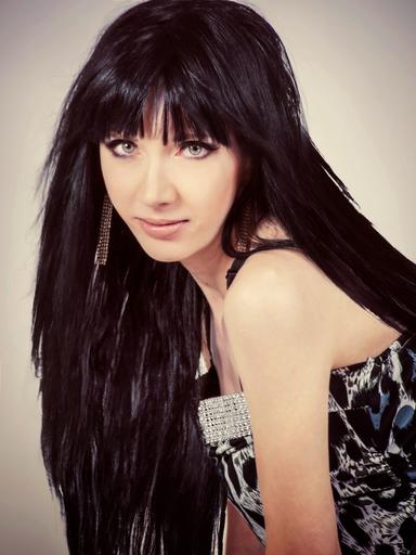 Keywords: portrait studio girl nice grey white black dark hair black hair heavy long hair looking