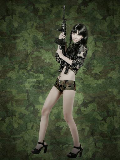 Keywords: portrait studio girl nice grey white black black hair army army woman