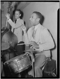 | Keywords: (Portrait of Tommy Myles and Tommy Potter, Washington, D.C., ca. Mar. 1942) (LOC) (5104549637).jpg Gottlieb William P 1917- photographer Portrait of Tommy Myles and Tommy Potter Washington D C ca Mar 1942 1 negative b w ; 3 1/4 x 4 1/4 in Notes Gottlieb Collection Assignment No 427 Reference print available in Music Division Library of Congress Purchase William P Gottlieb Forms part of William P Gottlieb Collection Library of Congress In The Washington Post no 24 006 Mar 8 1942 p VI 9 Subjects Myles Tommy Potter Tommy 1918- Jazz musicians--1940-1950 Drummers Musicians --1940-1950 Double bassists--1940-1950 Format Portrait photographs--1940-1950 Group portraits--1940-1950 Film negatives--1940-1950 Rights Info Mr Gottlieb has dedicated these works to the public domain but rights of privacy and publicity may apply http //lcweb2 loc gov/diglib/ihas/html/gottlieb/gottlieb-copyright html lcweb2 loc gov/diglib/ihas/html/gottlieb/gottlieb-copyrig Repository negative Library of Congress Prints Photographs Division Washington D C 20540 USA http //hdl loc gov/loc pnp/pp print hdl loc gov/loc pnp/pp print reference print Library of Congress Music Division Washington D C 20540 USA http //loc gov/rr/perform/ loc gov/rr/perform/ Part Of William P Gottlieb Collection DLC 99-401005 General information about the Gottlieb Collection is available at http //lcweb2 loc gov/diglib/ihas/html/gottlieb/gottlieb-home html lcweb2 loc gov/diglib/ihas/html/gottlieb/gottlieb-home html Persistent URL http //hdl loc gov/loc music/gottlieb 06491 hdl loc gov/loc music/gottlieb 06491 Call Number LC-GLB13- 0649<br/> PD-Gottlieb https //www flickr com/photos/library_of_congress/5104549637/ Portrait of Tommy Myles and Tommy Potter Washington D C ca Mar 1942 LOC https //www flickr com/people/8623220 N02 The Library of Congress http //www loc gov/rr/print/195_copr html noknown The Library of Congress Flickr Commons Flickr-no known copyright restrictions The Library of Congress https //flickr com/photos/8623220 N02/5104549637 2015-09-02 00 10 48 pd Photographs by William P Gottlieb |