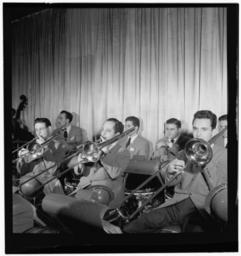 | Keywords: (Portrait of Vernon Friley, Irv Dinkin, Jim Harwood, John Chance, Paul Kashian, Nick Travis, Chuck Genduso, and Joe Ferrante, Hotel Commodore, Century Room, New York, N.Y., ca. Jan. 1947) (LOC) (5395852352).jpg Gottlieb William P 1917- photographer Portrait of Vernon Friley Irv Dinkin Jim Harwood John Chance Paul Kashian Nick Travis Chuck Genduso and Joe Ferrante Hotel Commodore Century Room New York N Y ca Jan 1947 1 negative b w ; 2 1/4 x 2 1/4 in Caption from Down Beat center trombone section left to right Vernon Friley Irv Dinkin Jim Harwood; Notes Gottlieb Collection Assignment No 219 Purchase William P Gottlieb Forms part of William P Gottlieb Collection Library of Congress In McKinley ork plays most interesting dance music in biz Down Beat v 16 no 3 Jan 29 1947 p 8 Subjects Friley Vernon 1924- Dinkin Irv Harwood Jim Chance John Kashian Paul Travis Nick Genduso Chuck Ferrante Joe 1929-1980 Ray McKinley Orchestra Jazz musicians--1940-1950 Big bands--1940-1950 Trombonists--1940-1950 Hotel Commodore Format Portrait photographs--1940-1950 Group portraits--1940-1950 Film negatives--1940-1950 Rights Info Mr Gottlieb has dedicated these works to the public domain but rights of privacy and publicity may apply http //lcweb2 loc gov/diglib/ihas/html/gottlieb/gottlieb-copyright html lcweb2 loc gov/diglib/ihas/html/gottlieb/gottlieb-copyrig Repository negative Library of Congress Prints Photographs Division Washington D C 20540 USA http //hdl loc gov/loc pnp/pp print hdl loc gov/loc pnp/pp print Part Of William P Gottlieb Collection DLC 99-401005 General information about the Gottlieb Collection is available at http //lcweb2 loc gov/diglib/ihas/html/gottlieb/gottlieb-home html lcweb2 loc gov/diglib/ihas/html/gottlieb/gottlieb-home html Persistent URL http //hdl loc gov/loc music/gottlieb 13781 hdl loc gov/loc music/gottlieb 13781 Call Number LC-GLB23- 1378<br/> PD-Gottlieb https //www flickr com/photos/library_of_congress/5395852352/ Portrait of Vernon Friley Irv Dinkin Jim Harwood John Chance Paul Kashian Nick Travis Chuck Genduso and Joe Ferrante Hotel Commodore Century Room New York N Y ca Jan 1947 LOC https //www flickr com/people/8623220 N02 The Library of Congress http //www loc gov/rr/print/195_copr html noknown The Library of Congress Flickr Commons Flickr-no known copyright restrictions The Library of Congress https //flickr com/photos/8623220 N02/5395852352 2015-09-02 00 08 36 pd Photographs by William P Gottlieb Vernon Friley Irv Dinkin Jim Harwood John Chance Paul Kashian Nick Travis Chuck Genduso Joe Ferrante |