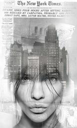 Keywords: portrait woman collage newspaper background face lips city news urbam modern black and white doubble exposition