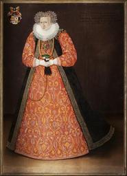 | Keywords: Porträtt, Amalia von Hatzfeldt - Skoklosters slott - 87716.tif Amalia von Hatzfeldt grevinna plain text Helfigur fas vänster <br/>Röd blå- och gulmönstrad klänning med svart ärmlös kappa kantad med svart blå- gulmönstrat band Mössa med bred uppstående spets <br/>Stort hängsmycke och bred guldhalskedja Om livet guldkedja som framtill i en båge går upp under kappan Till vänster fyrdelat vapen till höger inskrift AMALEI FEFWIN ZV RASBORGK -- FRAV ZV KIEGEHOLM GEBORENE VON DEM STAMMEN VND ALTEM GESCHLECHTE HATZFELDT ANNO DOMINO 1596 <br/>Kilad spännram <br/>Profilerad ram med grönärgade bronserade lister Ramlistens bredd 32 mm original caption Porträtt Amalia von Hatzfeldt<br/> Nyckelord Amalia von Hatzfeldt Pipkrage Handskar 1500-tal Porträtt Kvinna Målning Föremålsbild 1596 oil on canvas size mm 1350 1890 SKO Carl Gustaf Wrangel place of origin original filename sm_dig6631 23230 inventory number SKO 3012 87716 PD Madeleine Söder Madeleine Söder Ruffs in art female Portrait paintings Women in art Media contributed by LSH unmatched keyword Media contributed by LSH 2013-10 |