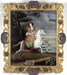 | Keywords: Porträtt. Ryttarporträtt. Catrine de Neuville Comtesse d´Armagnacq - Skoklosters slott - 56658.tif Catherine de Neufville d'Harcourt-Armagnac hertiginna plain text Helfigur till häst Klädd i grön damastkjol och röd guldbroderad höftlång jacka Vit spetshalsduk med violett rosett Vitt skärp Vit häst med violett guldbroderat täcke Spö och tyglar i händerna I fonden palatset Chateau de Fontainbleau innan ombyggnaden <br/>På dukens baksida N58 Pour Monseigr Le Duc Daumont <br/>Förgylld snidad ram med akantusblad Enförsilvrad mussla på vardera sidan Ramlistens bredd 113 mm Ny kilad spännram Dubblerad duk <br/><br/>Catrine de Neuville Comtesse d´Armagnacq Louis I <br/> Catherine de Neufville-Villeroy 1639-1707 grevinna syster till marskalk de Villeroy 7/10-1660 g m Louis I hertig av Lorraine-Harcourt-Armagnac 1641-1718 original caption Porträtt Ryttarporträtt Catrine de Neuville Comtesse d´Armagnacq decade 1670 oil on canvas size mm 685 580 SKO Antoine d' Aumont hertig Nils Bielke greve fältmarskalk 1644-1716 Trofast - hov och tass i kunglig tjänst 2010-2011 Livrustkammaren Trogna vänner - Kungliga hästar och hundar 2011-2012 Museiverket/Finlands nationalmuseum André Le Nôtre in perspective 1613-2013 2013-2014 Palace of Versailles place of origin original filename sm_t11313_3149 24475 inventory number SKO 3149 56658 PD Samuel Uhrdin Samuel Uhrdin Portrait paintings Media contributed by LSH unmatched creator Media contributed by LSH 2013-10 |