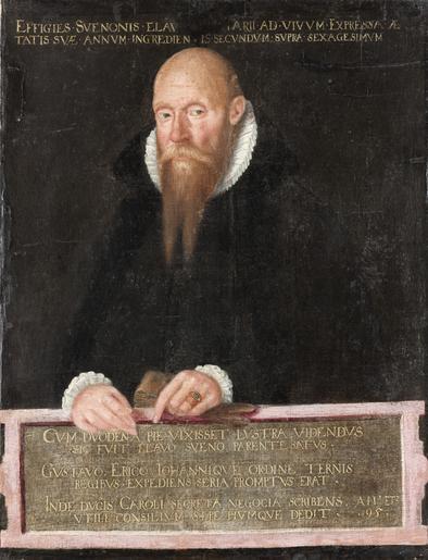 Keywords: Porträtt, sekreteraren Sven Elofsson - Skoklosters slott - 88976.tif LSH artwork creator Johan Baptista van Uther Sven Elofsson sekreterare plain text Midjebild fas vänster <br/>Kal hjässa rött tvekluvet skägg Svart kappa vit pipkrage och vita pipmanschetter Händerna stöder på grön inskriftstavla med rosa ram i vänstra handen handskar Mörk bakgrund <br/>Inskrift upptill EFFIGIES SVENONIS ELAV 1 AR11 AD VIVVM EXPRESSA <br/>AE -- TATIS SVAE ANNVM INGREDIEN S IS SECVNDVM SVPRA <br/>SEXAGESIMVM <br/>På inskriftstavlan CVM DVODENA PIE VIXISSET LVSTRA VIDENDVS -- SIC FVIT FLAVO SVENO PARENTE SATVS GVSTAVO ERICO IOHANNIQVE ORDINE TERNIS -- REGIBVS -- EXPEDIENS SERIA PROMTVS ERAT -- INDE DVCIS CAROLI SECRETA NEGOCIA SCRIBENS AN ETZ VTILE CONSILIVM SAEPE PIVMQVE DEDIT -- 95 <br/>Modern kilad spännram <br/>Svart profilerad ram med förgyllda lister ramlistens bredd 80 mm original caption Porträtt sekreteraren Sven Elofsson <br/> Nyckelord Porträtt Gubbe 1500-tal Sven Elofsson Skägg Pipkrage Föremålsbild Målning 1595 oil on canvas size mm 515 670 SKO place of origin original filename sm_dig3530 24343 inventory number SKO 3003 88976 PD Jens Mohr Jens Mohr Portrait paintings Ruffs in art male Media contributed by LSH unmatched creator Media contributed by LSH unmatched keyword Johan Baptista van Uther Media contributed by LSH 2013-10 |