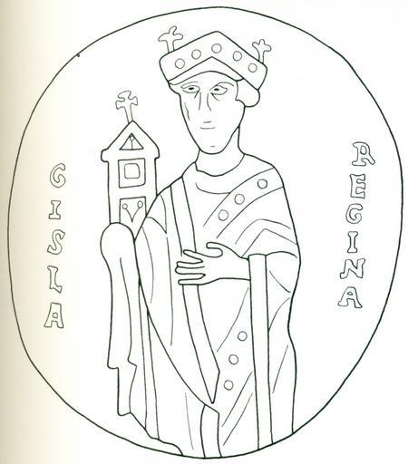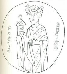 | Keywords: Portrayal of Gisela of Hungary on the coronation pall.jpg author 1031 textile embroidery scheme object history credit line accession number own scanned by Szilas from A magyar Szent Korona by Tóth Endre Szelényi Károly Kossuth 2000 Budapest PD-old-100 Coronation pall of Hungary |