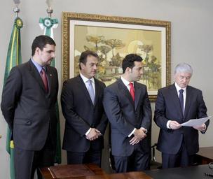 | Keywords: posse groupshot people indoor Deputados Pedro Lupion (DEM), Plauto Miró (DEM), Bernardo Ribas Carli (PSDB) e Valdir Rossoni (PSDB) Foto: Nani Gois Deputados Pedro Lupion (DEM), Plauto Miró (DEM), Bernardo Ribas Carli (PSDB) e Valdir Rossoni (PSDB) Foto: Nani Gois |