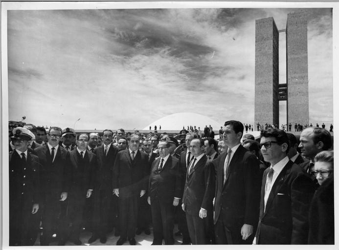 | Keywords: brasília df brasil blackandwhite monochrome photo border skyline black and white O presidente da República Costa e Silva ao lado de seu vice Pedro Aleixo em frente ao Congresso Nacional durante cerimônia de posse. Posse do presidente Costa e Silva em 15.03.1967, em sessão conjunta do Congresso Nacional, presidida pelo senador Auro Soares Moura Andrade. O presidente foi eleito por eleição indireta. O presidente da República Costa e Silva ao lado de seu vice Pedro Aleixo em frente ao Congresso Nacional durante cerimônia de posse. Posse do presidente Costa e Silva em 15.03.1967, em sessão conjunta do Congresso Nacional, presidida pelo senador Auro Soares Moura Andrade. O presidente foi eleito por eleição indireta. |