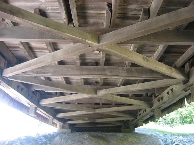 Keywords: Possum Bottom Covered Bridge, underside.jpg 94000584 39 47 50 N 87 27 13 W Trusses on the underside of the w Possum Bottom Covered Bridge located in the Ernie Pyle Rest Park on the northern side of U S Route 36 southeast of Dana Indiana Dana in Helt Township Vermillion County Indiana Helt Township Vermillion County Indiana Vermillion County Indiana United States Built in 1876 it is listed on the National Register of Historic Places own 2012-05-18 User Nyttend Nyttend No<nowiki></nowiki>ne Possum Bottom Covered Bridge Undersides of bridges in the United States Building-centered pictures by User Nyttend Taken with Canon PowerShot A540 |