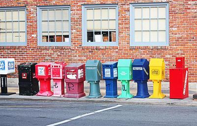 Keywords: post box usps streat outdoors colorful new orleans financial district
