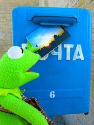 Keywords: post letter boxes mailbox throw a postcard kermti frog blue russian