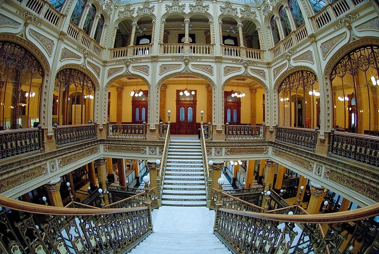Keywords: post office stairs post office accommodation estate furniture indoor package postal delivery renovation floor historic artisan building gold skylight