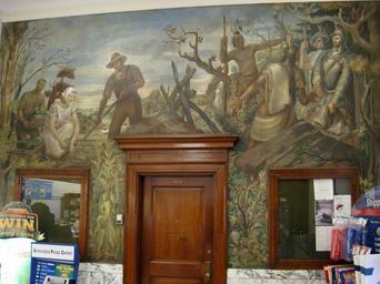| Keywords: Post Office WPA mural - Arlington, MA.JPG 86001351 Treasury Section of Painting and Sculpture mural Purchase of Land and Modern Tilling of the Soil 1938 by William C Palmer in post office Arlington Massachusetts USA As a work of the US federal government this image is free from copyright More information at http //livingnewdeal org/projects/post-office-arlington-ma-2/ The Living New Deal Own 2007-10-19 Daderot US Post Office Arlington Massachusetts Murals in Massachusetts Murals of Native Americans Massachusetts in the 17th century Section of Painting and Sculpture |