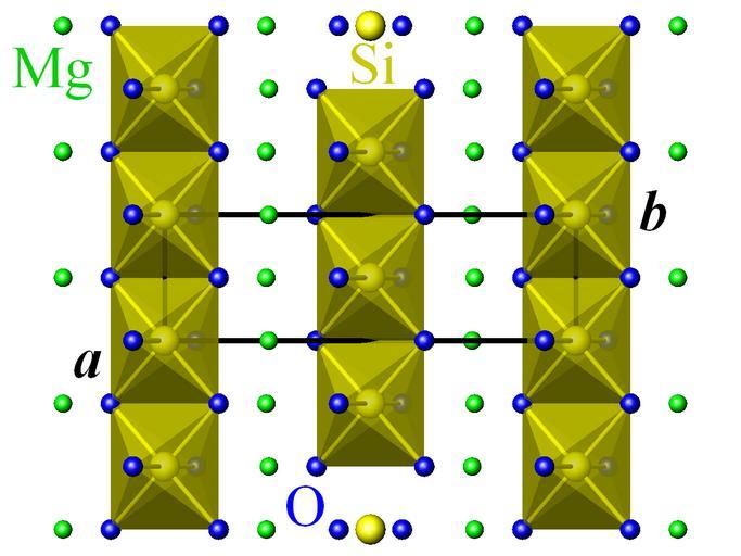 | Keywords: Post-perovskite structure ab.png en Crystal structure of the post-perovskite MgSiO3 space group Cmcm projected onto the a b plane Green magnesium yellow silicon blue oxygen Data source Murakami M ; Hirose K; Kawamura K; Sata N; Ohishi Y 2004 Post-Perovskite Phase Transition in MgSiO3 Science 304 5672 855 fr Structure cristalline de la post-pérovskite MgSiO3 groupe d'espace Cmcm projetée sur le plan a b Vert magnésium jaune silicium bleu oxygène Référence M Murakami K Hirose K Kawamura N Sata et Y Ohishi « Post-Perovskite Phase Transition in MgSiO3 » dans Science vol 304 no 5672 2004 p 855-858 own Perditax 2011-08-26 Cc-zero Post-perovskite Crystal structures in space group number 63 |