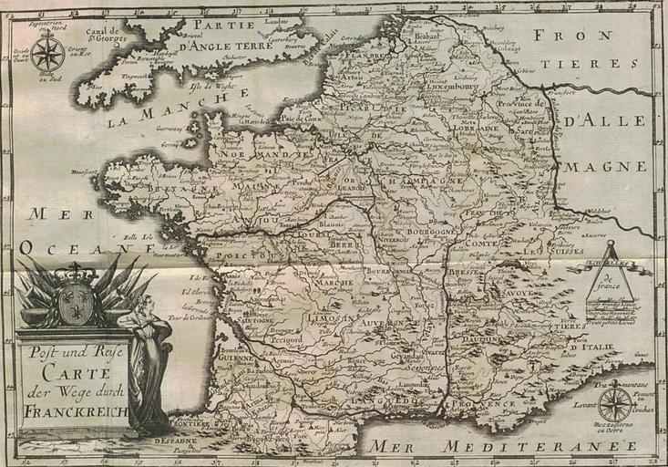 | Keywords: Post und Reisecarte der Wege durch Frankreich 1703.PNG en Stagecoach routes through France 1703 de Post und Reisecarte der Wege durch Frankreich 1703 http //www briefeankonrad com/2010/06/wieviel-schritte-sind-eine-meile-wegs html author um 1703 PD-Art PD-old Old maps of France Postal history of France |