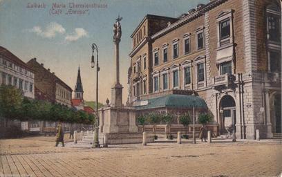 | Keywords: Postcard of Cafe Europa 1911.jpg Postcard of Cafe Europa 1911 http //www ebay de/itm/Laibach-Ljubljana-Maria-Theresien-Strase-Cafe-Europa-Ansicht-1911-Slowenien-/291478052955 author <gallery>File 1910 Ljubljana postcard - Cafe Europa jpg File Razglednica gosposvetske ceste jpg</gallery> PD-Slovenia Postcards of Ajdovščina Ljubljana 1911 postcards of Ljubljana Colored postcards of Ljubljana Postcards of Gosposvetska cesta Ljubljana Carriages in Ljubljana Postcards of the Tavčar Palace Historical images of the Holy Trinity Column Ljubljana Traffic bollards in the Center District Ljubljana |