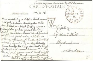 | Keywords: postcard france ww1 world war 1 worldwar1 public domain publicdomain nurse ripley nurseripley text document writing monochrome Sent by a nurse, Margaret Ripley, to her mother back in England. As far as I can tell (corrections and additions welcome) this reads: "30.4.15 Am writing a letter but can not get it done today so will send this on first to say we are all right & quite quiet today. Lovely weather. Todd went for walk with me yesterday & Sister is getting up today & both will start work again Monday I have been lucky to keep so well. Wonder if we shall come home or not. Received your card last night Love Mar Don't worry if letters do not come regularly it is not my fault." For more details of the story behind this album see www.flickr.com/photos/whatsthatpicture/sets/7215762769463... Sent by a nurse, Margaret Ripley, to her mother back in England. As far as I can tell (corrections and additions welcome) this reads: "30.4.15 Am writing a letter but can not get it done today so will send this on first to say we are all right & quite quiet today. Lovely weather. Todd went for walk with me yesterday & Sister is getting up today & both will start work again Monday I have been lucky to keep so well. Wonder if we shall come home or not. Received your card last night Love Mar Don't worry if letters do not come regularly it is not my fault." For more details of the story behind this album see www.flickr.com/photos/whatsthatpicture/sets/7215762769463... |
