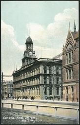 | Keywords: outdoor architecture building photo border Shows a view of the General Post Office, with clock tower. Quantity: 1 colour art print(s) on postcard. Physical Description: Collotype on postcard 139 x 88 mm. Zachariah, Joseph, 1867-1965. Postcard. General Post Office, Wellington. Photo by Zak. New Zealand post card (carte postale). F T Series no 2636. Printed in Britain. [1904-1914].. Ref: Eph-POSTCARDS-Wellington-06. Alexander Turnbull Library, Wellington, New Zealand. natlib.govt.nz/records/23079004 Shows a view of the General Post Office, with clock tower. Quantity: 1 colour art print(s) on postcard. Physical Description: Collotype on postcard 139 x 88 mm. Zachariah, Joseph, 1867-1965. Postcard. General Post Office, Wellington. Photo by Zak. New Zealand post card (carte postale). F T Series no 2636. Printed in Britain. [1904-1914].. Ref: Eph-POSTCARDS-Wellington-06. Alexander Turnbull Library, Wellington, New Zealand. natlib.govt.nz/records/23079004 |