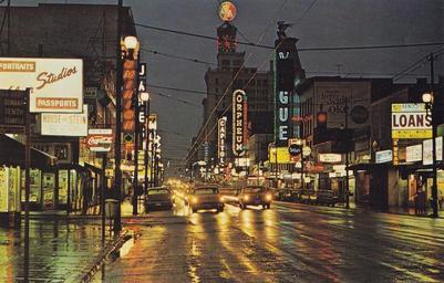 | Keywords: city architecture skyline outdoor "Granville Street at Night Vancouver, Canada" Post Card. 23096-C. Pub. By Capilano Trading Post, North Vancouver, B.C. Made in Canada. Dexter Color, Canada, Ltd. Cornwall, Ontario. Night shot of Granville Street looking north from the 1000-block towards the intersection at Nelson Street in Vancouver, BC. "Granville Street at Night Vancouver, Canada" Post Card. 23096-C. Pub. By Capilano Trading Post, North Vancouver, B.C. Made in Canada. Dexter Color, Canada, Ltd. Cornwall, Ontario. Night shot of Granville Street looking north from the 1000-block towards the intersection at Nelson Street in Vancouver, BC. |