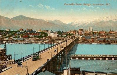 | Keywords: water waterfront outdoor skyline bay city river landscape architecture bridge watercourse shore coast lake sea seaside infrastructure building building structure road "Granville Street Bridge, Vancouver, B.C." The Valentine & Sons' Publishing Co., Ltd. Montreal and Toronto. Printed in Great Britain. Northerly view of the second Granville Street Bridge (1909-1954) in Vancouver, BC. The bridge was a medium level steel type with swing span. "Granville Street Bridge, Vancouver, B.C." The Valentine & Sons' Publishing Co., Ltd. Montreal and Toronto. Printed in Great Britain. Northerly view of the second Granville Street Bridge (1909-1954) in Vancouver, BC. The bridge was a medium level steel type with swing span. |
