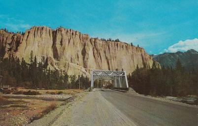 | Keywords: outdoor landscape "THE COLORFUL KOOTENAY SERIES The Hoodoos at Dutch Creek, British Columbia, Canada. Ektachrome by R. Donaldson" Post Card. Pub. by Donaldson's Studio, P. O. Box 100, Cranbrook, B. C., Canada. Printed in U.S.A. Made By DEXTER, West Nyack, N. Y. Hoodoos along the Kootenay Highway (Hwys. 95 and 93) at Dutch Creek south of Fairmont Hot Springs, BC. Highway bridge built 1954 (extant). "THE COLORFUL KOOTENAY SERIES The Hoodoos at Dutch Creek, British Columbia, Canada. Ektachrome by R. Donaldson" Post Card. Pub. by Donaldson's Studio, P. O. Box 100, Cranbrook, B. C., Canada. Printed in U.S.A. Made By DEXTER, West Nyack, N. Y. Hoodoos along the Kootenay Highway (Hwys. 95 and 93) at Dutch Creek south of Fairmont Hot Springs, BC. Highway bridge built 1954 (extant). |