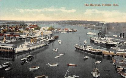 | Keywords: water waterfront outdoor vehicle ship boat "The Harbour, Victoria, B.C." Post Card. The Valentine & Sons' Publishing Co., Ltd. Montreal and Toronto. Printed in Great Britain. British Manufacture. View looking west over the Inner Harbour in Victoria, BC on Vancouver Island. "The Harbour, Victoria, B.C." Post Card. The Valentine & Sons' Publishing Co., Ltd. Montreal and Toronto. Printed in Great Britain. British Manufacture. View looking west over the Inner Harbour in Victoria, BC on Vancouver Island. |