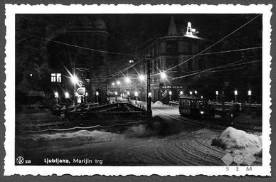 | Keywords: Postcard of Ljubljana, Prešeren Square at night (2).jpg Postcard of Ljubljana Prešeren Square at night naselje/f0039009 creator Vekoslav Kramarič between 1928 1947 watermark PD-Slovenia NoFoP-Slovenia Photographs by Vekoslav Kramarič Postcards of Prešeren Square at night Snow in the Center District Ljubljana Historical images of snow in Ljubljana Trams at Prešeren Square Postcards of the Triple Bridge Triple Bridge at night Historical views of the Kresija Palace from Prešeren Square Postcards of Philip Mansion Historical images of Prešeren Monument Ljubljana Prešeren Square in winter Street lights in the Center District Ljubljana at night Kresija Palace at night Philip Mansion at night |
