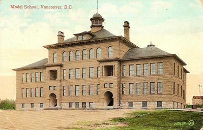 | Keywords: outdoor architecture building "Model School, Vancouver, B.C." Souvenir Post Card. The Valentine & Sons' Publishing Co., Ltd. Montreal and Toronto. Printed in Great Britain. 557 West 12th Avenue. Built 1905. Architect: E.E. Blackmore. Operated in conjunction with the Provincial Normal School (built 1908) for special and experimental instruction. After the mid-1950s, it was used by the Provincial Government, partly for Adult Education. By the 1970s, the building was not in use. Exists at 555 West 12th Avenue as part of the City Square complex (Paul Merrick, architect, 1989). "Model School, Vancouver, B.C." Souvenir Post Card. The Valentine & Sons' Publishing Co., Ltd. Montreal and Toronto. Printed in Great Britain. 557 West 12th Avenue. Built 1905. Architect: E.E. Blackmore. Operated in conjunction with the Provincial Normal School (built 1908) for special and experimental instruction. After the mid-1950s, it was used by the Provincial Government, partly for Adult Education. By the 1970s, the building was not in use. Exists at 555 West 12th Avenue as part of the City Square complex (Paul Merrick, architect, 1989). |