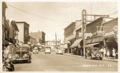 | Keywords: monochrome road "Nanaimo, B.C. 72." View looking north up Commercial Street into the 000-block towards Skinner Street in Nanaimo, BC on Vancouver Island. "Nanaimo, B.C. 72." View looking north up Commercial Street into the 000-block towards Skinner Street in Nanaimo, BC on Vancouver Island. |