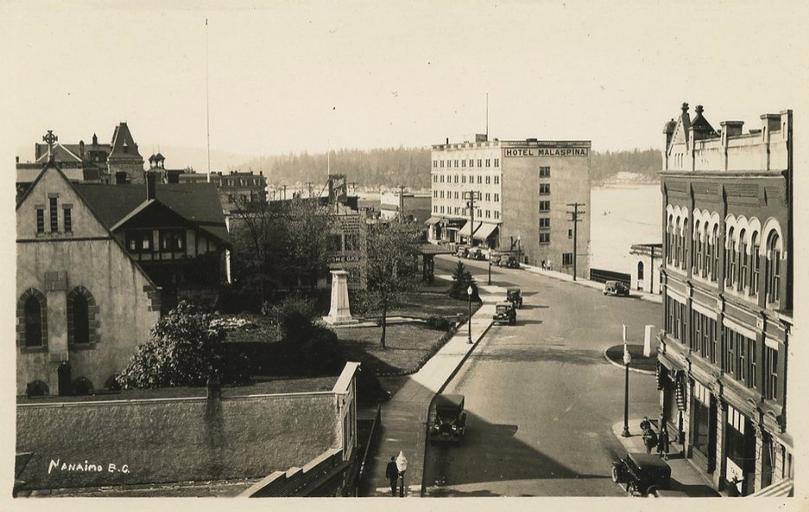 | Keywords: outdoor "Nanaimo B.C." AZO Post Card. Made in Canada. View looking NE up the 000-block of Church Street towards the intersection at Front Street in Nanaimo, BC on Vancouver Island. Visible is St. Paul's Anglican Church, the Courthouse, the War Memorial, the Hotel Malaspina and the Hotel Windsor. "Nanaimo B.C." AZO Post Card. Made in Canada. View looking NE up the 000-block of Church Street towards the intersection at Front Street in Nanaimo, BC on Vancouver Island. Visible is St. Paul's Anglican Church, the Courthouse, the War Memorial, the Hotel Malaspina and the Hotel Windsor. |