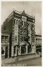 | Keywords: architecture building photo border "New England Café, Victoria, B. C." Post Card. Copyright, Canada, Leonard Frank. Importex Company, Vancouver, B.C. Real Photograph. Imprimé en Allemagne. New England Hotel & Cafe Ltd., 1312 Government Street, Victoria, BC. Harry Wille, manager. Phones 161 & 3477-0 (1930). Built 1892; extant. Architect: John Teague. "New England Café, Victoria, B. C." Post Card. Copyright, Canada, Leonard Frank. Importex Company, Vancouver, B.C. Real Photograph. Imprimé en Allemagne. New England Hotel & Cafe Ltd., 1312 Government Street, Victoria, BC. Harry Wille, manager. Phones 161 & 3477-0 (1930). Built 1892; extant. Architect: John Teague. |